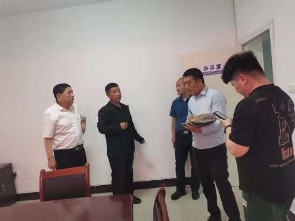 平舆分公司黄经理详细介绍了党支部的布局与规划,周总对分公司党建工作给予肯定。并对支部办公室、会议室、党员休闲娱乐场所等墙体版面进行相应的设计指导。