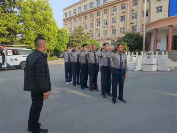 为了进一步加强公司保安队伍整体素质和服务质量,提高保安服务意识、纪律意识和团队协作能力,增强保安员的凝聚力、向心力和保障力,提升队员在工作中的积极性,提高服务质量、促进保安队伍建设,为树立我分公司良好的企业形象打下坚实基础。2024418日平舆分公司利用晨会时间组织检察院岗点保安员大练兵。