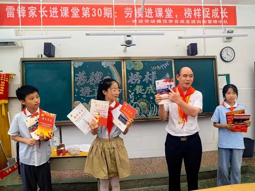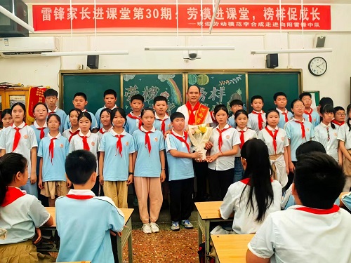 近日,河南省劳动模范、98彩票网上蔡县分公司经理李合成来到驻马店市实验小学开展“劳模进课堂 榜样促成长”分享交流活动。充分发挥劳模工匠的示范引领作用,引导青年学生树立远大理想,努力拼搏奋进新时代。实验小学向阳雷锋中队师生70余人参加活动。