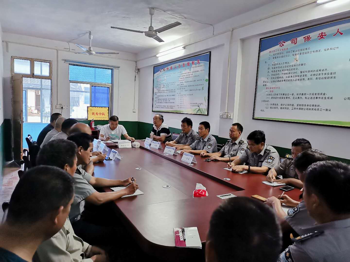 会议开始由公司车经理给各岗点组长宣读上半年各岗点工作中出现的问题点。车经理要求,对于存在的问题点希望各岗点组长及时整改,要严格按照公司的规章制度去执行。对于7月份实施的服装整顿,和文明用语整顿,各岗点的保安有很明显的改变和进步,希望大家能继续保持,要全身心投入工作中,要树立严谨、仔细的工作作风,为用人单位提供更好的服务!