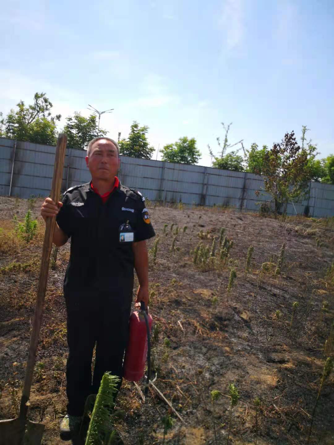 2020年4月6日,新蔡县一工地由于电线老化,加上高温天气发生火灾,新蔡县分公司保安员英勇救火的事迹得到消防战士及群众称赞。