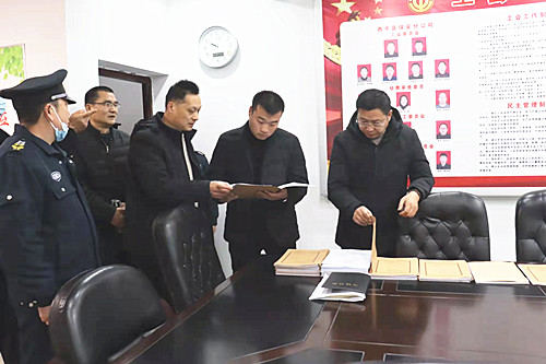 考评组首先对西平分公司办公场所进行查看,分公司经理高合群向市公司考核考评领导小组一行简要汇报了分公司2021年领导班子建设、作用发挥、履职尽责、业务开展、等方面所取得的成绩。考评组在分公司三楼小会议室查看;分公司保安员保险缴纳情况,合同签订情况,服务费收取情况等,在分公司五楼大会议室进行分公司班子成员民主测评。考评组实地抽查3个岗点进行检查。