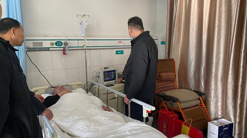 2023年12月5日上午.西平县分公司常务副经理周保卿、副经理、工会主席冀学军,副经理赵国平,人防大队中队长于化冰一行,前往西平人民医院看望慰问在家生病住院队员。