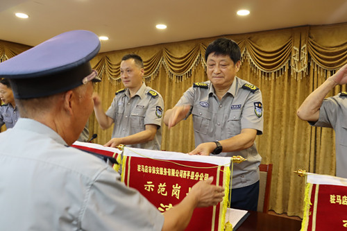 会上传达了市公司和县分公司有关任命文件,并对半年来的工作进行总结讲评,接着向示范岗点颁发了流动红旗。