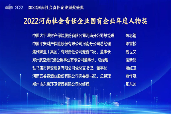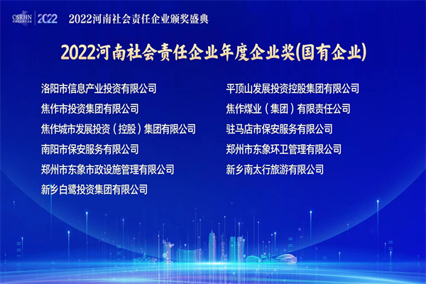 2023年5月,98彩票网被河南日报社、河南省人民政府国有资产监督管理委员会、河南省地方金融监督管理局、河南省工业和信息化厅、河南省慈善联合总会评为“2022河南社会责任企业”。公司党总支书记董事长姚红卫被评为“河南社会责任企业突出贡献企业家”。