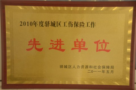 被驿城区人力资源和社会保障局授予2010年度工伤保险工作先进单位